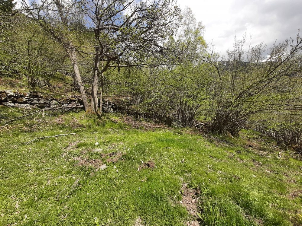 Avellaneda (Corylus avellana) sin sotobosque, distribuida en bancales de antiguos cultivos abandonados, que presenta pequeños claros en forma de prados pasturados. Los bancales están parcialmente delimitados por antiguos muros de piedra derruidos.