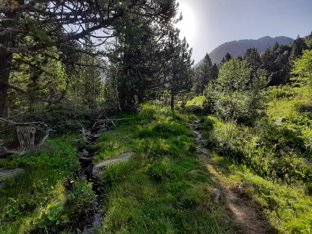 Parcela ubicada dentro del Parque Natural de Sorteny, situada en un bosque mixto de ribera compuesto por caducifolios y pino negro (Pinus uncinata) con un denso sotobosque de rododendro (Rhododendron ferrugineum) y mirtilo (Vaccinium myrtillus) en toda su extensión.