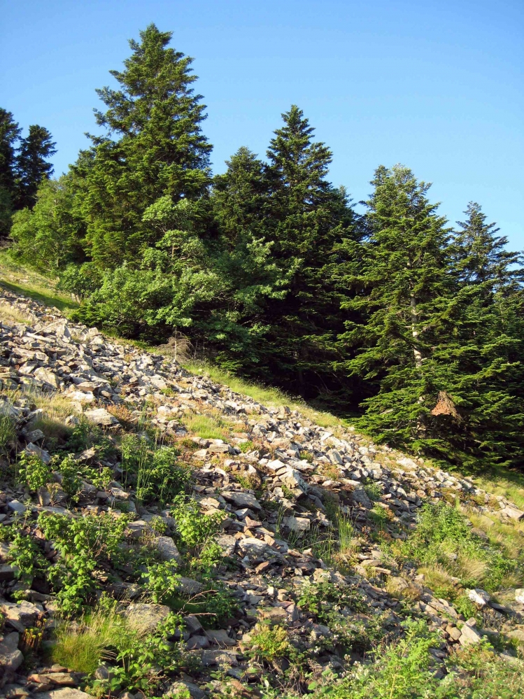 Parcel·la situada a uns 1442m.s.n.m.. S’accedeix des del Turó de l’Home, seguint el camí que va a Santa Fe del Montseny. La característica principal és que es troba sobre una tartera, la qual ha estat colonitzada parcialment pels avets. El pendent de la parcel·la és molt pronunciat (31.9%). El recobriment de roques és elevat (43.6%). Respecte els estrats vegetals, el recobriment d’herbes és baix (< 20%), i l’arbustiu és gairebé inexistent, mentre que l’arbori és abundant (70%). Aquesta parcel·la també va ser mostrejada en el període 1995-1997.
