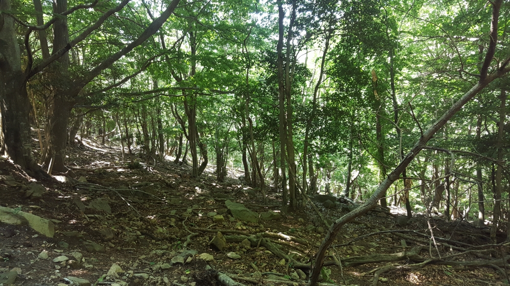 Bosc de Fageda (Fagus sylvatica). Sotabosc molt nèt, amb algun boix grèvol (Ilex aquifolium) i arç blanc (Crataegus monogyna). a la part de baix hi ha un torrent on baixa poca aigua i a la part de dalt delimita amb una pista forestal. Pendent molt pronunciat.