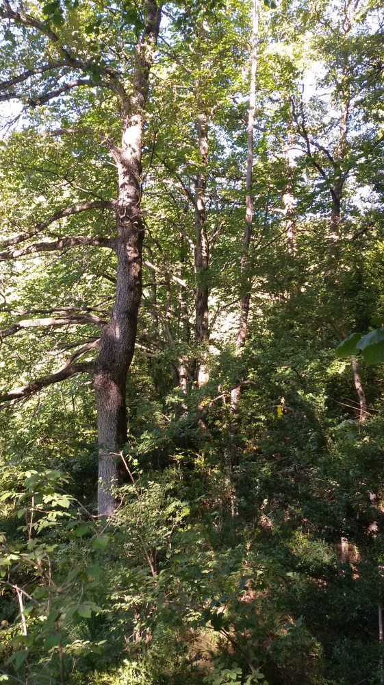 Roureda de roure de fulla gran (Quercus petraea), amb sotabosc de boix i alguns avellaners, amb petits afloramens de roca. L'estrat arbori està constituit per roures i freixes (90%), mentre que l'estrat arbustiu alt (40%) per boix i avellaner. L'estrat herbaci és pobre (<15%) ja que el terra és recobert per fullaraca (60%). La coberta muscinal és moderada (15%), sempre associada a les roques i escorces dels arbres.