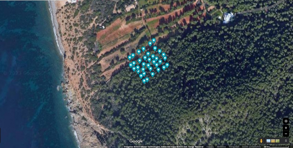 Parcel·la situada dins el Parc Natural de Ses Salines d'Eivissa i Formentera, concretament al Carreró de Can Blai. Es tracta del llindar d'un bosc mediterrani dominat per pins, savines, ginebres, romers, mates i cepells principalment. En l'ecotó amb una zona agrícola que presenta una part dels camps treballats i l'altra sense treballar. S'han trobat restes d'aprofitament forestal a l'interior de la parcel·la. El terreny presenta una inclinació pronunciada. El seguiment d'aquesta parcel·la ha començat el 3/5/2023.